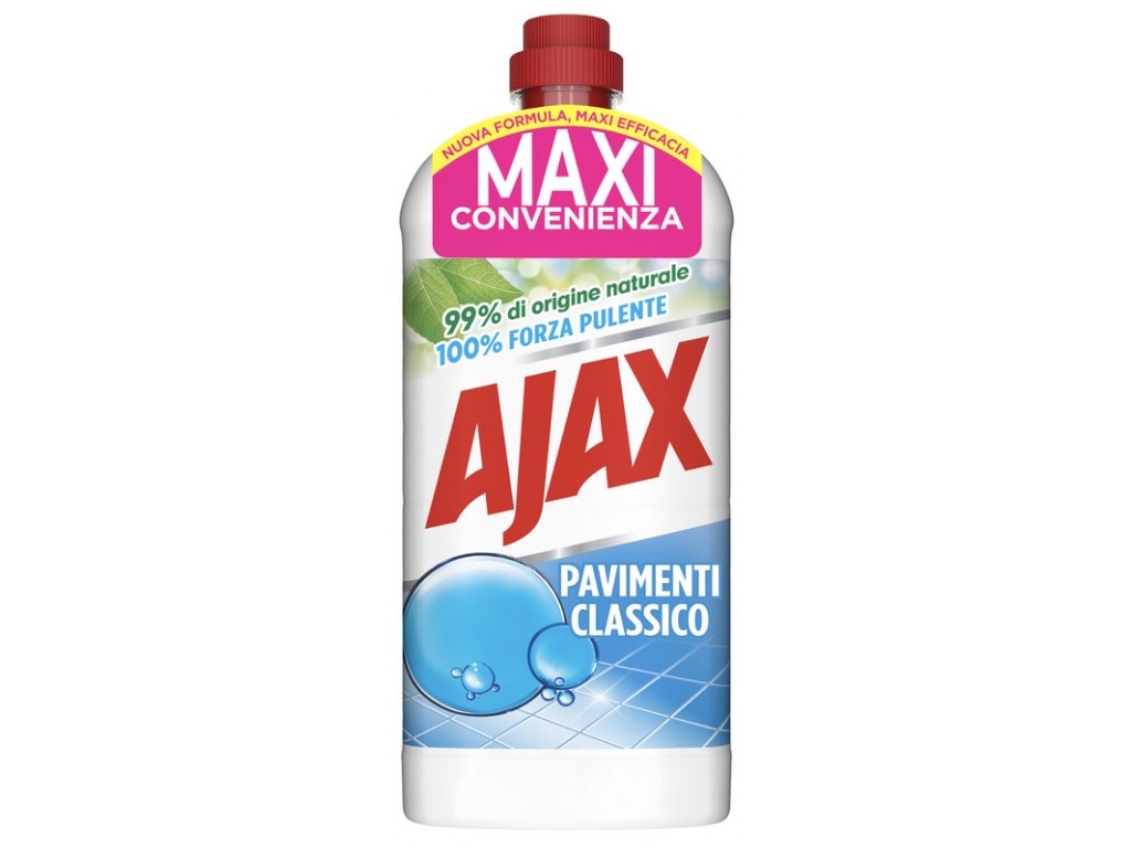 Ajax Bianco Classico je čistiaci prostriedok na všetky povrchy s jedinečnou vôňou. Vôňa Bianco Classico sa postupne uvoľňuje a osviežuje tak váš domov prírodnou sviežosťou, ktorá pretrváva dlhšie ako 24 hodín. Ajax čistí do hĺbky a zanecháva povrch čistý, pričom chráni jemné povrchy. Je možné ho použiť bez oplachovania alebo drhnutia. Je účinnejší a ohľaduplnejší k našej planéte. Vyrobený pre Taliansky trh .