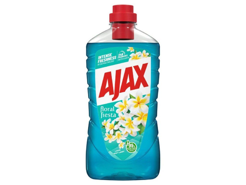Ajax na podlahu Floral Fiesta Lagoon Flowers 1l Hlavné výhody: Účinné čistenie: Ajax Lagoon je navrhnutý na dôkladné odstránenie nečistôt, prachu a škvŕn z rôznych typov podláh, vrátane dlažby, laminátu a vinylu. Jeho silné zloženie zabezpečuje efektívne čistenie aj v náročných podmienkach, čím uľahčuje údržbu domácnosti. Osviežujúca vôňa lagúny: Po použití zostáva vo vašej domácnosti príjemná a osviežujúca vôňa, ktorá navodzuje pocit čistoty a pohody. Táto vôňa je ideálna pre vytvorenie útulného a príjemného prostredia. Jednoduché použitie: Ajax na podlahu sa jednoducho používa. Stačí naliať odporúčané množstvo do vedra s vodou, zamiešať a umyť podlahu. Rýchlo a efektívne tak dosiahnete požadované výsledky bez zbytočného úsilia. Ekologické zloženie: Tento produkt je vyrobený s ohľadom na ochranu životného prostredia, pričom poskytuje účinné čistenie bez agresívnych chemikálií. Je bezpečný pre vás, vašu rodinu aj domáce zvieratá. Dlhá výdrž: S objemom 1 l je Ajax na podlahu Lagoon dostatočne veľký na to, aby ste mohli pravidelne čistiť a udržiavať vaše podlahy v skvelej kondícii, čím šetríte čas a peniaze. Použitie: Pre optimálne výsledky nalejte 1-2 uzávery čistiaceho prostriedku do vedra s vodou. Dobre zamiešajte a pomocou mopu alebo handry umyte podlahu. Pre ťažšie škvrny je možné naniesť prostriedok priamo na znečistené miesto a nechať chvíľu pôsobiť pred umytím. Ajax na podlahu Lagoon 1 l je ideálnou voľbou pre každého, kto chce dosiahnuť čisté a svieže podlahy s minimálnym úsilím. S týmto produktom si zabezpečíte voňavé a príjemné prostredie vo vašej domácnosti, ktoré vás poteší. Cena je za 1ks/1lDodatočné parametre