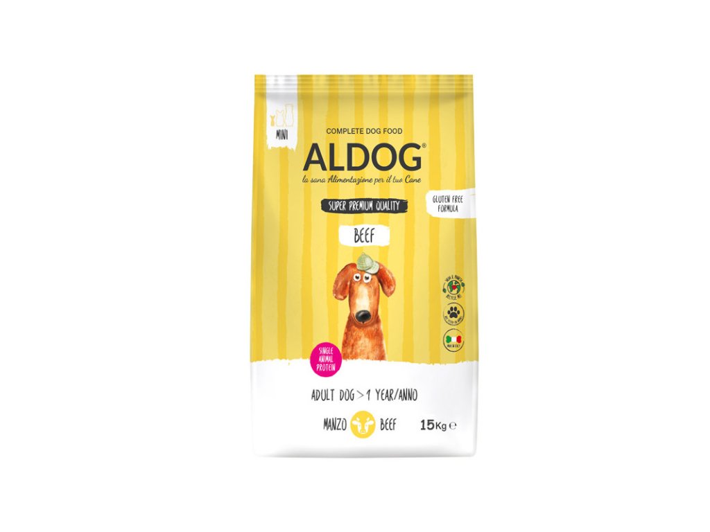 Aldog by Freedog Adult Beef Mini je kompletné monoproteínové krmivo s vysokým obsahom hovädzieho mäsa určené pre dospelých psov malých plemien.
