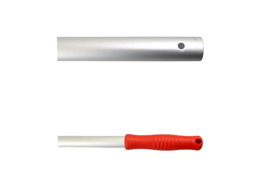Alu násada eloxovaná bez závitu ČERVENÁ, 140cm Táto eloxovaná hliníková násada je vyrobená z kvalitného prvotriedneho hliníku s vytvarovanou plastovou rúčkou a s dĺžkou 140 cm, ktorá slúži ako násada na všetky profi držiaky mopov, padov. ALU násada je veľmi pevná a odolná vďaka svojej hrúbke 23,5mm sa neláme, nekriví ani nehrdzavie. Násada sa jednoducho nasadí na držiak mopu a je bez závitu. Tým že plastová rúčka je farebne rozlíšená je možnosť ju použiť i v HACCP systéme. Hrúbka: 23,5 mm Dĺžka: 140 cm Farba: ČERVENÁ Balenie obsahuje 1 ks.Dodatočné parametre