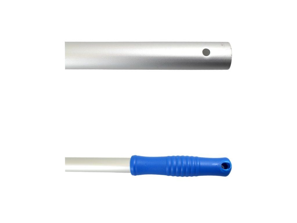 Alu násada eloxovaná bez závitu MODRÁ, 140cm Táto eloxovaná hliníková násada je vyrobená z kvalitného prvotriedneho hliníku s vytvarovanou plastovou rúčkou a s dĺžkou 140 cm, ktorá slúži ako násada na všetky profi držiaky mopov, padov. ALU násada je veľmi pevná a odolná vďaka svojej hrúbke 23,5mm sa neláme, nekriví ani nehrdzavie. Násada sa jednoducho nasadí na držiak mopu a je bez závitu. Tým že plastová rúčka je farebne rozlíšená je možnosť ju použiť i v HACCP systéme. Hrúbka: 23,5 mm Dĺžka: 140 cm Farba: MODRÁ Balenie obsahuje 1 ks.Dodatočné parametre
