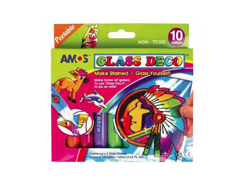 Farby na sklo 10 farieb 10,5 ml + šablóny a fólie. NAZDOBTE SI SKLO PODĽA VLASTNEJ FANTÁZIE! S farbičkami na sklo je umelec každý! Vytvor si vlastnú kúzelnú výzdobu! Vhodné na okno, zrkadlo, dlaždice, ai. Farby sú netoxické. BALENIE OBSAHUJE: - 9 ks farieb na sklo 10,5 ml (žltá, oranžová, ružová, fialová, tmavo zelená, svetlo zelená, modrá, hnedá, biela) - 1 ks čierne kontúry 10,5 ml - 5 ks predlôh na papieri - 2 ks fólií na maľovanie NÁVOD: 1. Priložte fóliu na šablónu. 2. Obkreslite kontúrou obrys šablóny a nechajte 1-2 hodiny schnúť. 3. Potom vyfarbite obrázok a nechajte 24 hodín schnúť. 4. Opatrne ho zlúpnite z fólie a umiestnite na zvolený povrch. Dodávame v papierovej krabičke. Uvedená cena je za 1 balenie.Dodatočné parametre