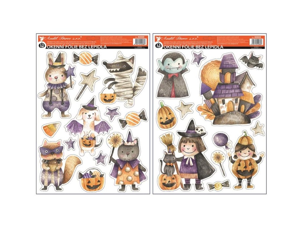 Dekoračná okenná fólia čarodejnice s glitrom. Táto samolepiaca fólia s roztomilými postavičkami čarodejníc, upírov a zvieratiek v kostýmoch, doplnená o tradičné halloweenské motívy, je perfektnou dekoráciou na oživenie vašich okien či iných hladkých povrchov. Vďaka trblietavým detailom septembra a priťahujú pozornosť. Fólia je ľahko použiteľná, bez potreby lepidla, a je možné ju jednoducho aplikovať aj odstrániť, bez zanechania stôp, a je opakovane použiteľná. Ideálna voľba pre vytvorenie zábavnej a strašidelnej halloweenskej výzdoby! NÁVOD: 1. Zlúpnite z podložky obrázok a umiestnite na čisté, prípadne navlhčené sklo stranou, ktorá bola na podložke. 2. Obrázok elektrostaticky priľne. 3. Fólia sa ľahko zlúpne a dá sa premiestniť. Rozmer: 290 x 410 mm Dodávame v mixe po 2 ks podľa skladovej zásoby. Uvedená cena je za 1 ks.Dodatočné parametre