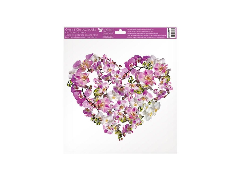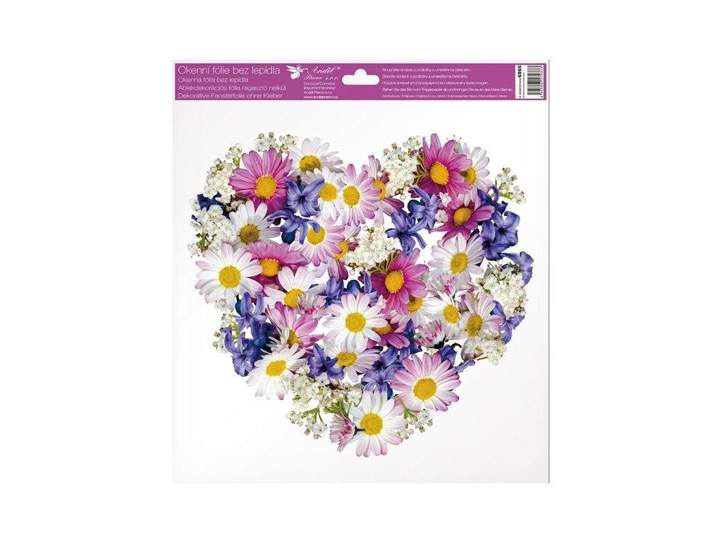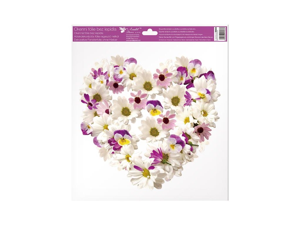Anděl Okenná fólia 6865 srdce z kvetov 30x33,5 cm