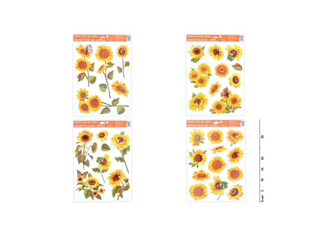 Okenná fólia - slnečnice. Vyzdobte si okno týmito krásnymi samolepkami na okno. Vytvorí Vám kúzelnú atmosféru domova. Na plochu priľnú elektrostaticky a nezanechávajú teda po sebe žiadnu stopu. NÁVOD: 1. Odlepte obrázok z podložky a umiestnite na čisté, prípadne navlhčené sklo stranou, ktorá bola na podložke. 2. Obrázok elektrostaticky priľne. 3. Fólia sa ľahko zlúpne a dá sa premiestniť. Dodávame v mixe po 4 ks podľa skladovej zásoby. Uvedená cena je za 1 ks.Dodatočné parametre