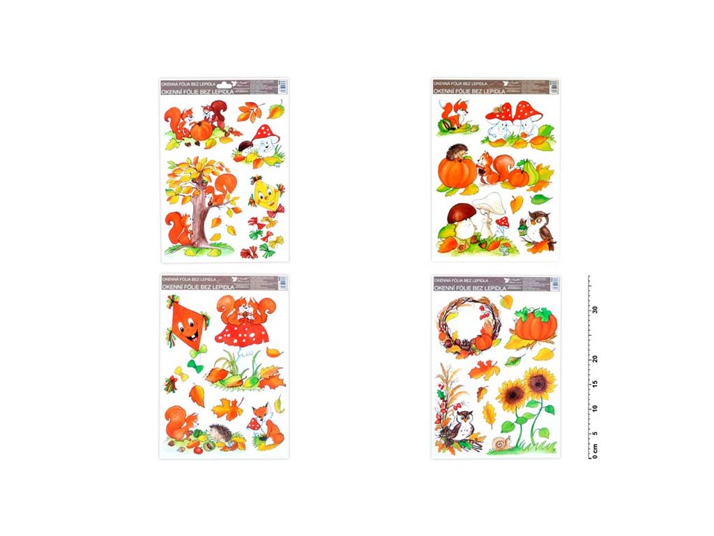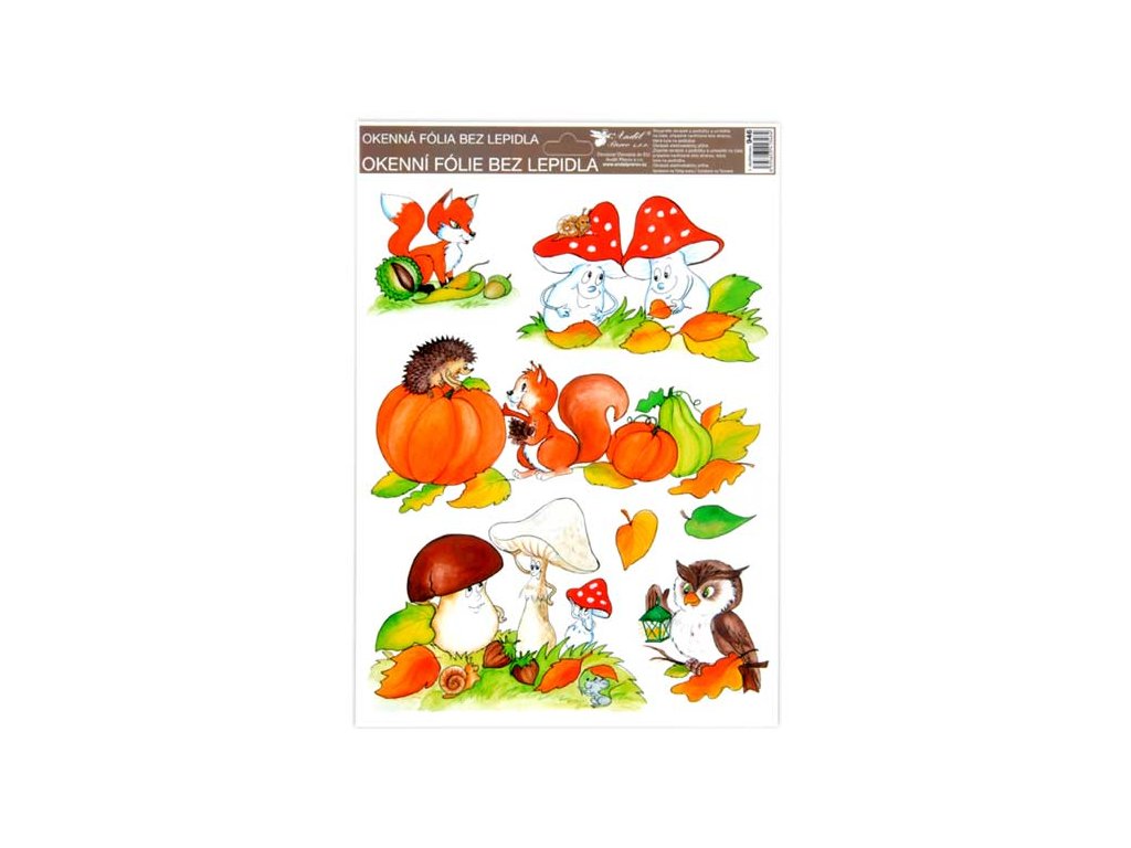 Okenná fólia – ručne maľovaná jeseň - sovy, veveričky, líšky. Vyzdobte si okno týmito krásnymi samolepkami na okno. Vytvoria vám čarovnú atmosféru domova. Na plochu priľnú elektrostaticky a nezanechávajú teda po sebe žiadnu stopu. NÁVOD: 1. Odlepte obrázok z podložky a umiestnite ho na čisté, prípadne trochu navlhčené sklo tou stranou, ktorou je na podložke. 2. Obrázok elektrostaticky priľne. 3. Fólia sa ľahko dá aj odlepiť a premiestniť. Dodávame v mixe po 4 ks podľa skladových zásob. Uvedená cena je za 1 ks.Dodatočné parametre