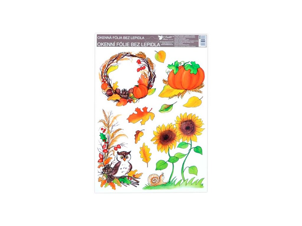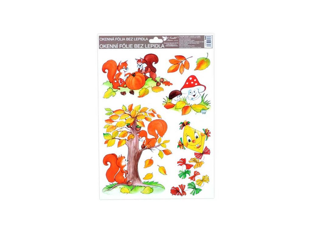 Anděl Okenná fólia 946 ručne maľovaná jeseň sovy,veveričky,líšky 37x26 cm