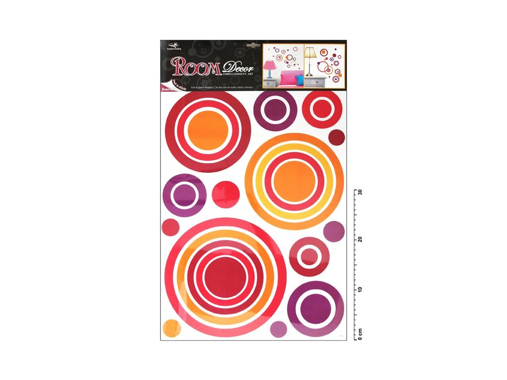 Samolepiaca dekorácia ružové kruhy na steny, dvere, okná, zrkadlá a iné hladké plochy. Táto samolepka na stenu v okamihu oživí vašu obývačku, kúpeľňu, chodbu, detskú izbu či spálňu. NÁVOD: 1. Opatrne odstráňte samolepku z podkladového papiera a umiestnite ju na zvolenú, čistú a suchú rovnú plochu. 2. Samolepku vyhľaďte od stredu k okrajom tak, aby pod ňou neostali žiadne vzduchové bubliny. Uvedená cena je za 1 hárok.Dodatočné parametre