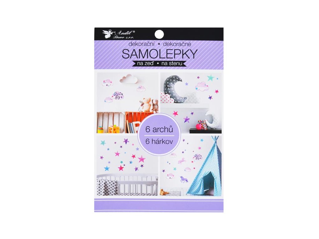 Anděl Samolepiaca dekorácia 15054 v bloku jednorožce, hviezdy 16 x 23 cm 6 listov