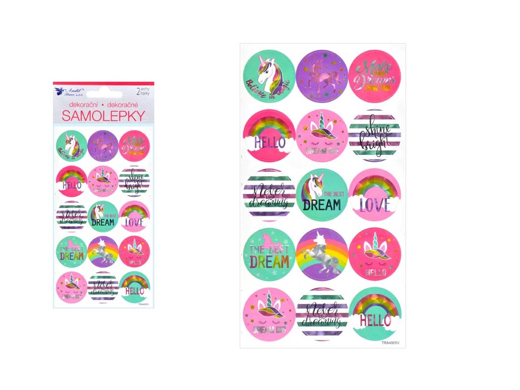 Samolepky pre dievku – kolieska s nápismi – vhodné ako dekorácia do zošita, bloku. NÁVOD: 1. Odlepte nálepku z podkladu a zvoľte vhodné miesto na nalepenie. 2. Lepkavú stranu pritlačte k povrchu, ktorý je pevný, hladký, čistý a rovný. 3. Po nalepení dôkladne vyhlaďte, tým odstránite prípadné vzduchové medzery. UPOZORNENIE: NIE JE TO HRAČKA! Obal odstráňte z dosahu detí. Používajte pod dohľadom dospelej osoby. Uvedená cena je za 1 ks, v ktorom sú 2 hárky. Na 1 hárku je 15 samolepiek.Dodatočné parametre