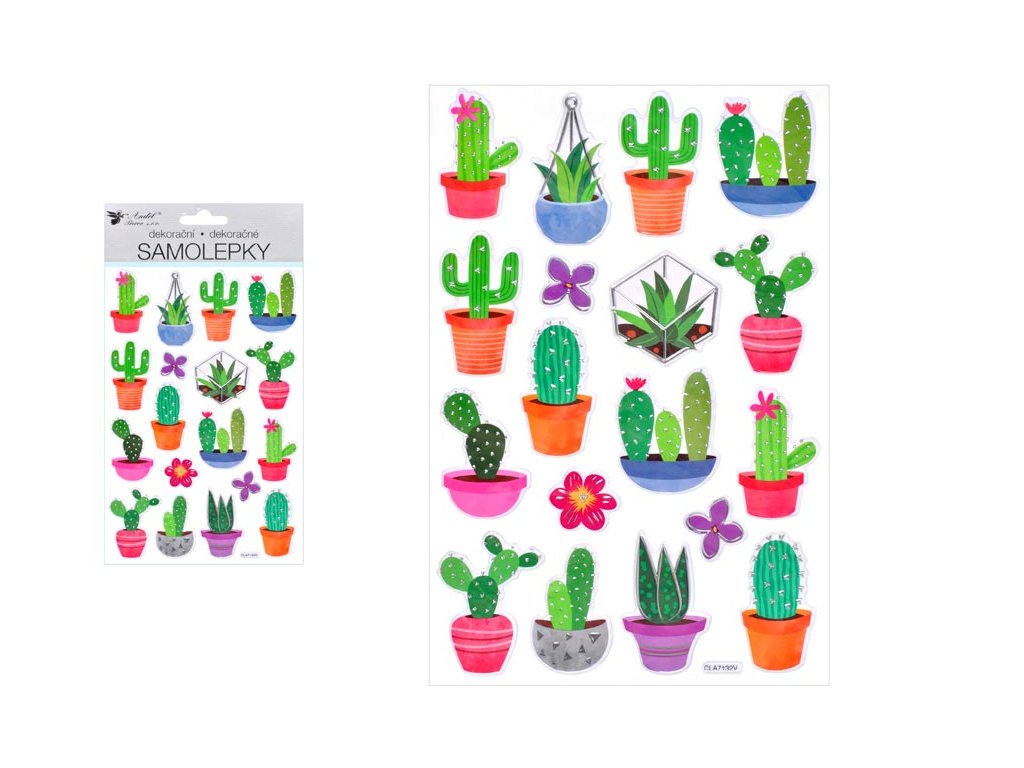 Samolepky – kaktusy plastické – vhodné ako dekorácia do zošitu, bloku NÁVOD: 1.Odlepte nálepku z podkladu a zvoľte vhodné miesto na nalepenie. 2. Lepiacu stranu pritlačte na pevný povrch, ktorý je hladký, čistý a rovný. 3. Po nalepení dôkladne vyhlaďte, odstránite tým prípadné vzduchové medzery. UPOZORNENIE: Nie je to hračka, obal odstráňte z dosahu detí. Používajte pod dozorom dospelej osoby. Uvedená cena je za 1 ksDodatočné parametre