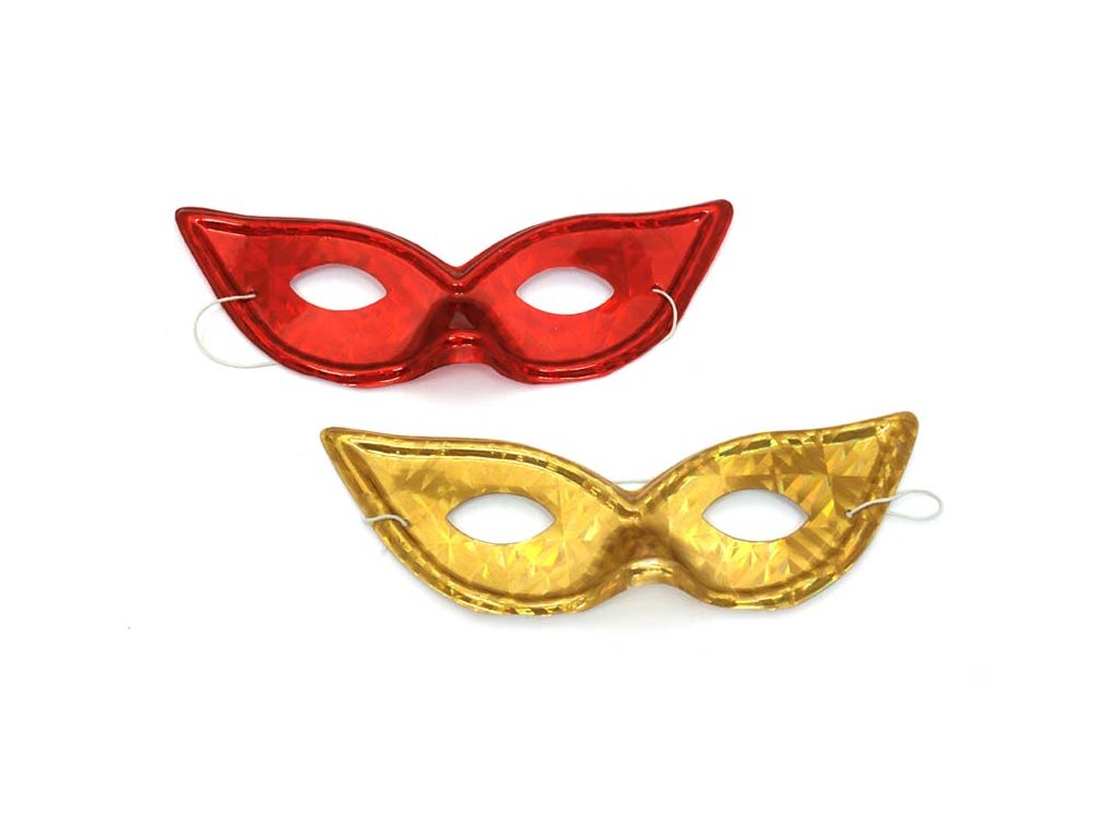 Hologramová škraboška – mačacie oči. Ples alebo maškarný ples bez škrabošky? Ani náhodou! Premeňte sa na kráľovnú plesu a zabezpečte si krásnu škrabošku, ktorou ohromíte každého. Prevedenie: 2 rôzne farby (zlatá, červená) Dodávame vo vrecúšku. Uvedená cena je za 1 ks.Dodatočné parametre