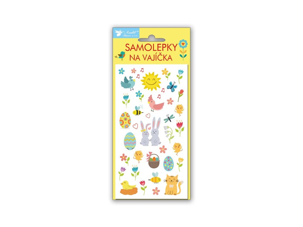 Samolepky na veľkonočné vajíčka. Nájdete tu obrázky veľkonočných vajíčok, kuriatok, ovečiek, vtáčikov a ďalších jarných a veľkonočných motívov. Ako nalepiť samolepku na vajce: Na dekorovanie použite čisté odmastené a suché vajce. Odstráňte krycí papier. Opatrne odlepte vybraný obrázok z podkladovej fólie. Lepiacou stranou priložte obrázok na vajce a prstom ho uhlaďte. Dodávame v mixe podľa kladových zásob. Rozmery hárku: 19 x 9 cmDodatočné parametre