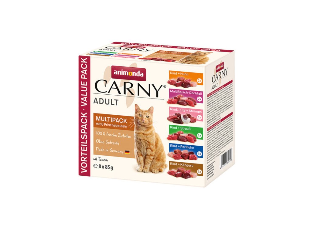 Animonda Carny Adult Multipack predstavuje výnimočne šťavnaté mäsové kúsky, ktoré zahŕňajú chutnú, zdravú a vyváženú stravu pre dospelé mačky od 1. roka života. V balení po 8ks kapsičiek.Dodatočné parametre