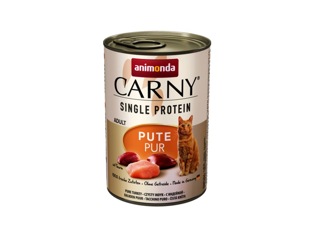 Animonda Carny Adult Single Protein - čisté morčacie je konzerva s obsahom len čerstvých mäsových častí z jediného zdroju bielkovín pre dospelé mačky trpiace na niektorý zdroj živočíšnej alebo rastlinnej bielkoviny.Dodatočné parametre