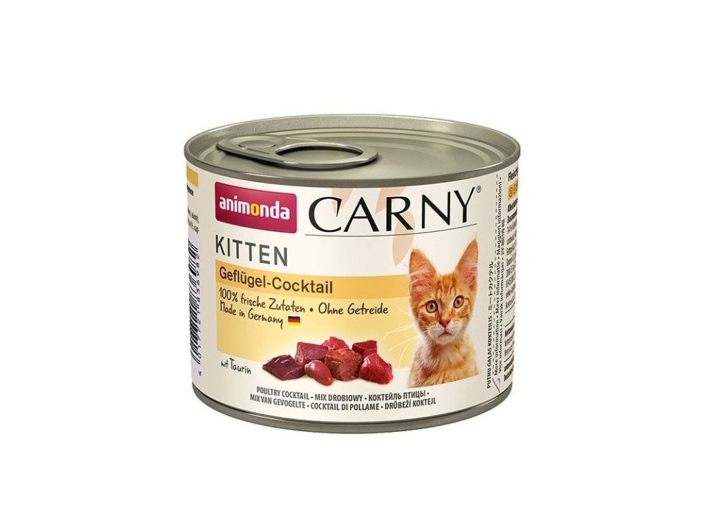 Carny Kitten - hydinový kokteil je konzerva vyrobená len z čerstvých mäsových častí, ktoré sú tým pravým pre Vaše mačiatko - veľkosť a tvar mäsových kúskov ideálne do úst mačiatok od 2. mesiacov.Dodatočné parametre