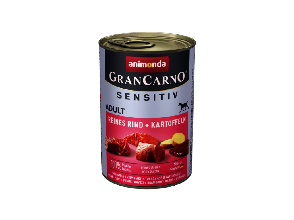 Animonda GranCarno Sensitiv Adult - hovädzie so zemiakmi s jediným druhom živočíšnych proteínov pre dospelých psov všetkých plemien s citlivým trávením.Dodatočné parametre