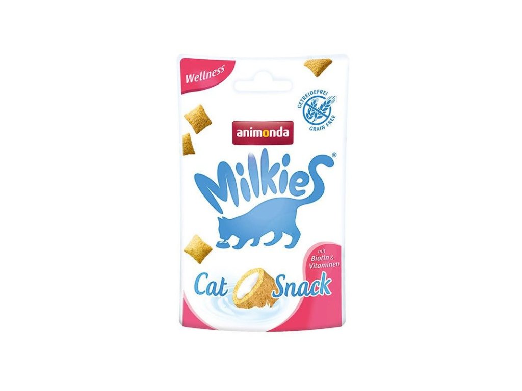 Animonda Milkies - Wellness s biotínom a vitamínmi sú bezobilninové chrumkavé vankúšiky plnené mliekom.Dodatočné parametre