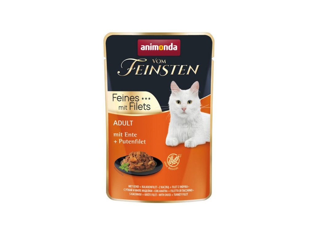 Animonda Vom Feinsten Feines mit Filets Adult Cat - Kačica a morčacie filety predstavuje kombináciu kúskov mäsa s jemnými filetami v lahodnej omáčke. Vyvážená a bezobilninová strava pre Vašu dospelú mačku.Dodatočné parametre