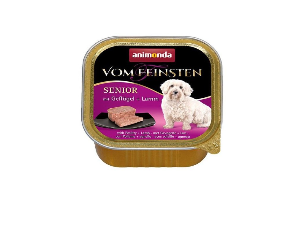 Vom Feinsten Senior - hydina a jahňa predstavuje mäsovú paštétu chutnej, zdravej a vyváženej stravy pre starších psov od 7. rokov života.Dodatočné parametre