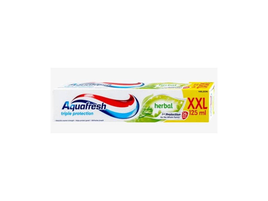 Zubná pasta Aquafresh Herbal s bylinkovou príchuťou je vhodná pre všetkých členov rodiny. Obsahuje minerály, ktoré posilňujú zuby, chránia ich pred zubným kazom, zabraňujú povlaku, čím ochraňujú vaše ďasná a udržujú svieži dych. Používajte 2krát denne. Pred použitím odstráňte ochrannú fóliu. Uchovávajte mimo dosahu detí. Objem balenia 125ml.Dodatočné parametre