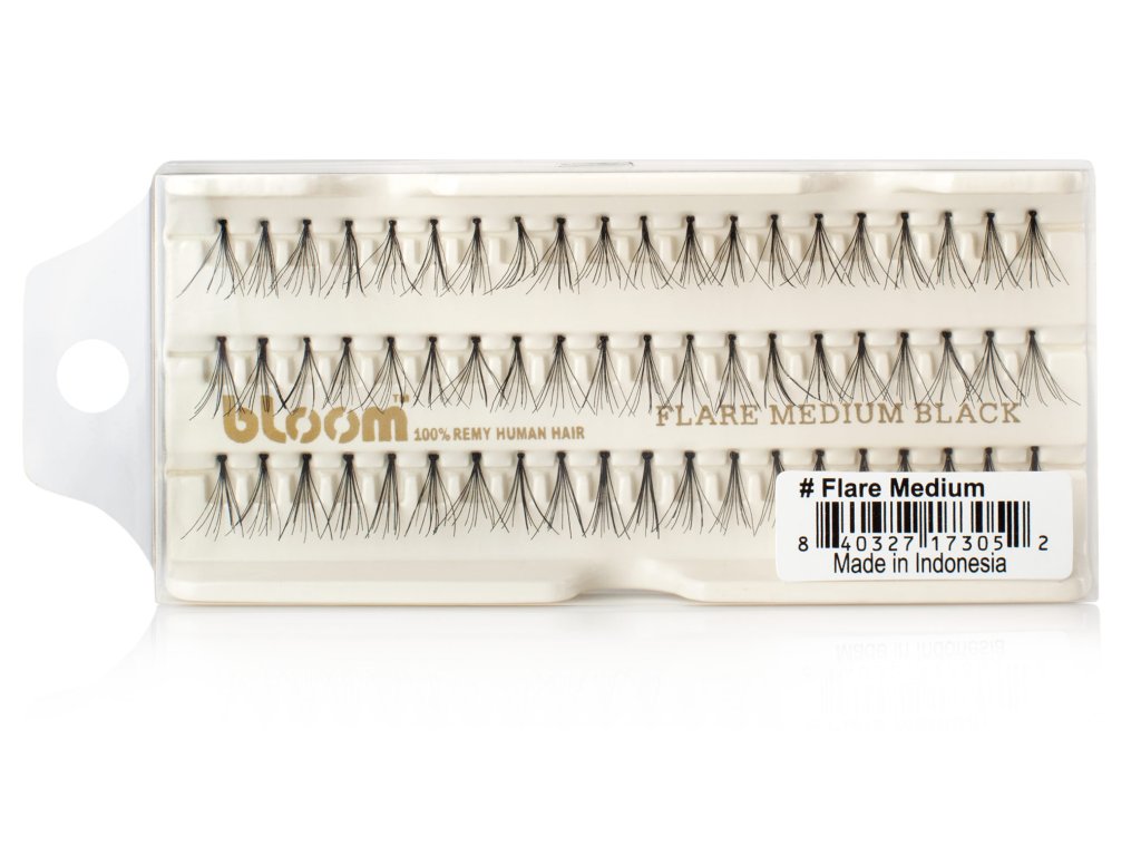 Bloom trsové mihalnice Flare - Medium - tento typ mihalníc je vhodný na denné alebo večerné líčenie. Trsy vieme aplikovať jemnejšie, alebo hustejšie, podľa požadovaného výsledného efektu. Použitie: pomocou pinzety opatrne vyberieme jeden trs. Na koniec trsu nanesieme lepidlo a následne prilepíme čo najbližšie k prirodzenej línii mihalníc. Obsah: 56ks jednotlivých trsov.Dodatočné parametre