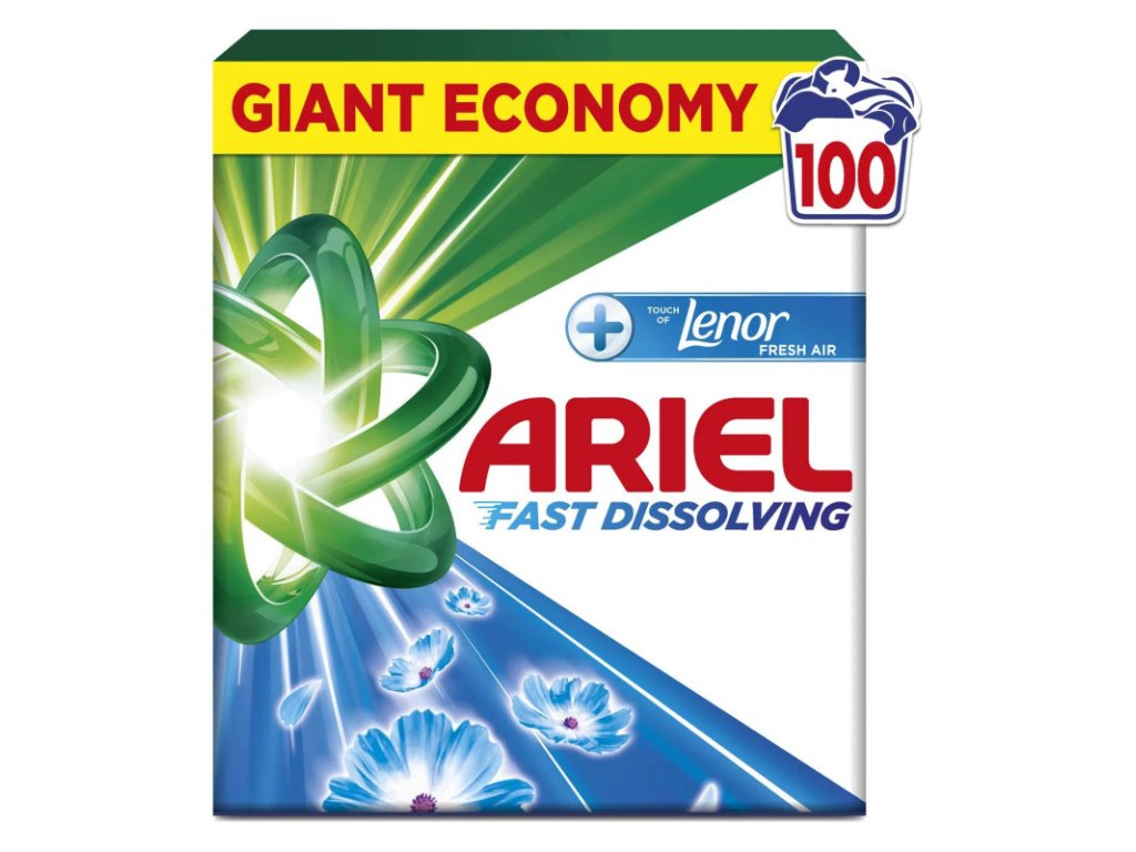 ARIEL+ Touch of Lenor Fresh air 5,5 kg (100 praní) Ariel +Touch of Lenor Unstoppables Universal Fast Dissolving vďaka koncentrovanému zloženiu poskytuje silnejší účinok a vyperie viac bielizne na gram. Prináša väčšiu sviežosť a poskytuje vynikajúci pocit čistoty aj pri praní na nižšiu teplotu. Vďaka technológii rýchleho rozpúšťania sa prášok pri kontakte s vodou okamžite aktivuje a preniká hlboko do vlákien aj pri nízkych teplotách. Znížte teplotu prania na 30 °C a ušetrite až 60 % energie. Studené pracie cykly zároveň pomáhajú chrániť vaše tkaniny dlhšie ako pranie v teplej vode. Zloženie obsahuje 80 % biologicky rozložiteľných organických zložiek. Navyše má Ariel + Touch of Lenor Fresh air 100 % recyklovateľné balenie. Vlastnosti: Ide o univerzálny prací prášok – 100 PD/pracích dávok Koncentrované zloženie zaisťuje silnejší účinok a vyšší počet praní na gram Okamžite sa aktivuje vo vode a preniká hlboko do vlákien aj pri nízkej teplote Prací prášok na farebnú bielizeň, bielu bielizeň a čiernu bielizeň Perfektný na bežnú údržbu bielizne Cena je za bal./5,5 kg