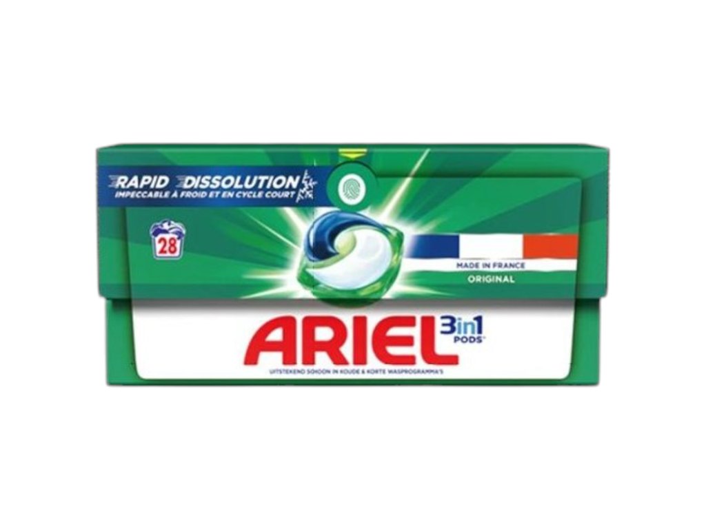 Ariel 3v1 PODS Original(FR) sa rýchlo rozpúšťajú, dokonca aj v studenej vode, pre dokonalé výsledky za studena a v krátkom cykle. Pranie za studena s Ariel PODS: pranie pri nízkej teplote šetrí elektrickú energiu, a preto znižuje CO₂. To tiež chráni vašu bielizeň dlhšie (v porovnaní s horúcimi cyklami). Pri kontakte s vodou sa 100% rozpustný film Pods úplne rozpustí, čím sa uvoľnia výkonné technológie na odstraňovanie škvŕn, čím sa zabezpečí efektívne a hĺbkové čistenie. S vôňou Original Ariel.