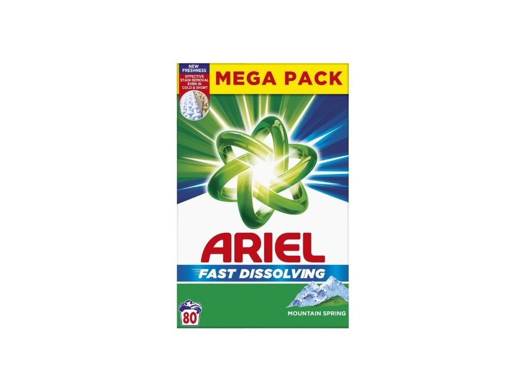 Prášok na pranie Ariel poskytuje sviežosť a efektívne odstránenie škvŕn dokonca aj pri praní v krátkom cykle pri nízkych teplotách Vďaka jedinečnej technológii rýchleho rozpúšťania sa pri kontakte s vodou rýchlo rozpustí a okamžite aktivuje a preniká hlboko do vlákien, dokonca aj pri praní v krátkom cykle pri nízkych teplotách. Znížte teplotu prania na 30 °C a ušetrite až 60 % energie.Dodatočné parametre