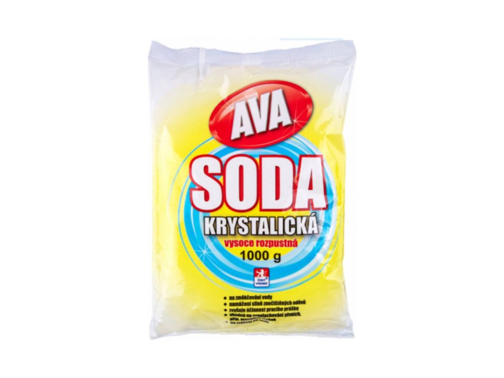 AVA kryštalická sóda 1000g Vysoko rozpustné zmäkčovadlo vody. na namáčanie silne znečistených odevov zvyšuje účinnosť pracieho prášku zabraňuje usadzovaniu vodného kameňa na oplachovanie pivných alebo mastných trubiek na zvýšenie pH vody. Použitie: Na namáčanie pridajte 60-80 g sódy na 10 l vody /polievkové lyžice=8g sódy/ Cena je za bal./1000g