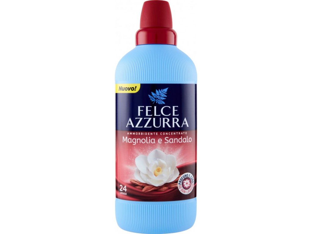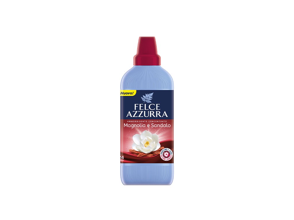 Produkt priamo z krásneho Talianska! Produkty Felce Azzurra sa okrem vynikajúcich čistiacich a ošetrujúcich vlastností vyznačujú predovšetkým jedinečnými vôňami. Verzia Magnolia e Sandalo je spojenie magnólie a santalového dreva . Zloženie s exkluzívnymi mikrokapsulami dodá vašej bielizni vôňu, ktorá vydrží 5x dlhšie. Produkt má navyše o 20 % aktívnejšie zmäkčovadlo. Balenie 600 ml vystačí na 24 praní.