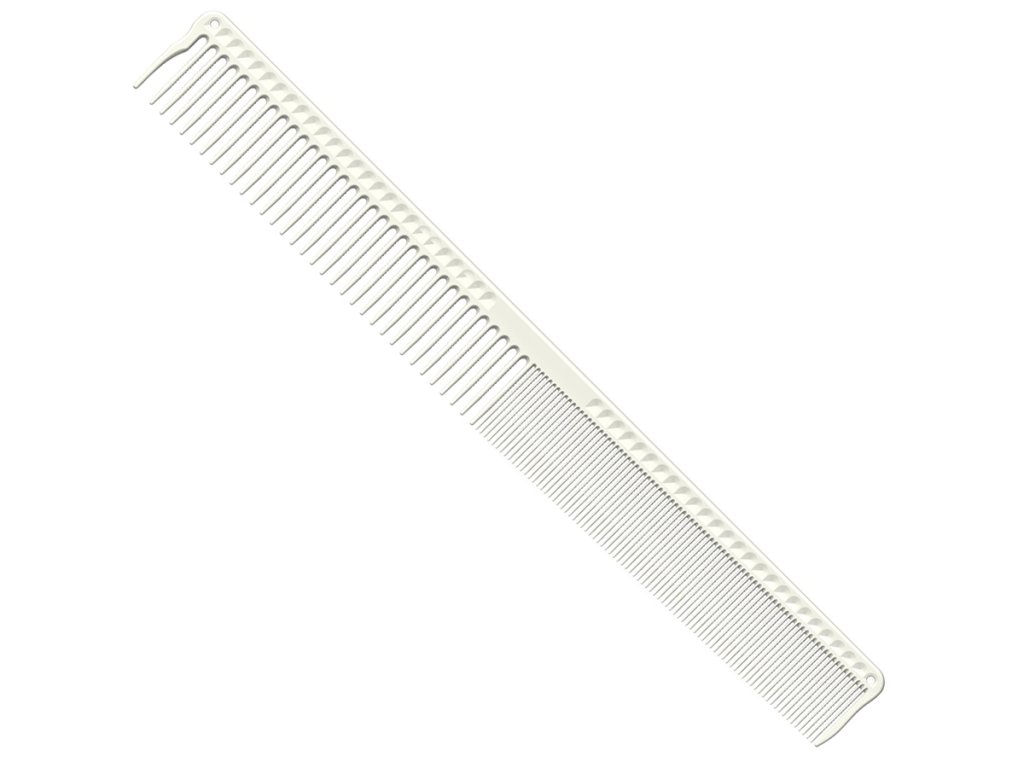 Profesionálny segmentačný hrebeň na rozdelenie sekcii a strihanie vlasov od značky JRL v bielej farbe s dĺžkou 9,3″ (23,6 cm), špeciálne navrhnutý pre rôzne druhy strihov. Je vyrobený z kvalitného, ľahko ohybného, ale pevného plastu s tepelnou odolnosťou až 240°C. Má patentovaný vroubkovaný dizajn zubov, ktorý pomáha zdvihnúť vlasy.