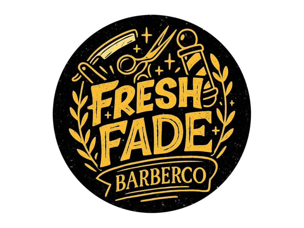 Štýlová barber samolepka BARBERCO Fresh fade z lesklého PVC. Priemer 10 cm, okrúhly tvar. Ideálny doplnok do každého barber shopu, na zrkadlo, dvere alebo pracovnú stanicu.