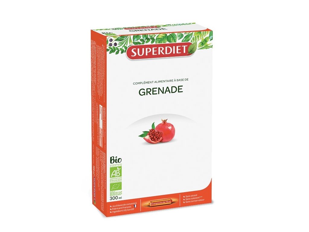 Granátové jablko pôsobí ako prírodný antioxidant aj preto patrí medzi ovocie, ktoré je súčasťou tradičnej medicíny už od čias Egypťanov. Granátové jablko je prirodzene bohaté na antioxidanty a to vitamín C, flavonoidy či taníny. Tento produkt Grenade bio má silný protizápalový účinok, čo je vhodné ako prevencia kardiovaskulárnych chorôb, prevencia problémov s prostatou a pre zlepšenie prúdenia krvi. Navyše pomáha proti starnutiu buniek a chráni pred oxidačným stresom. Granátové jablko je bobule so semenami jednotlivo obklopenými červenou dužinou, arils. Ovocie má svoj názov z latinského Malum granatum, čo znamená „malozrnné ovocie“ a Punicium malum znamená „púnske ovocie“, v odkaze na púnsku civilizáciu v Kartágu (Tunisko), ktorá udržiavala veľké sady granátových jabĺkDodatočné parametre