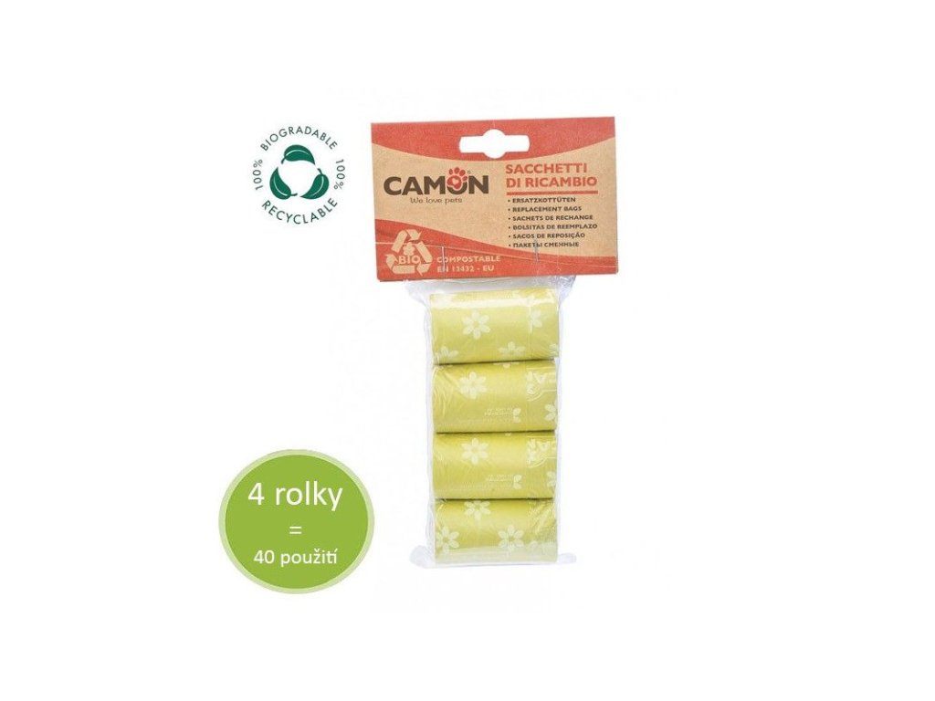 Bio rozložiteľné sáčky na exkrement Camon 4 rolky - vyrobené z kukuričného škrobu, ktorý je plne kompostovateľný.Dodatočné parametre