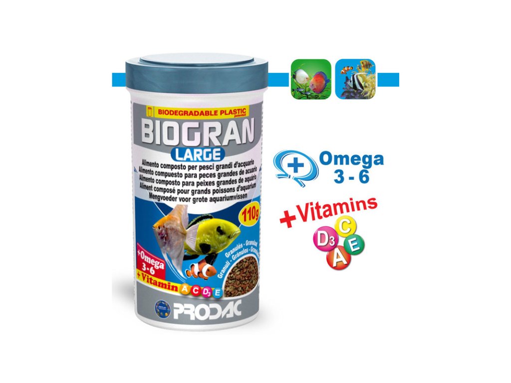 Biogran Large je kŕmna granulovaná zmes pre veľké akvarijné sladkovodné a morské ryby.Dodatočné parametre