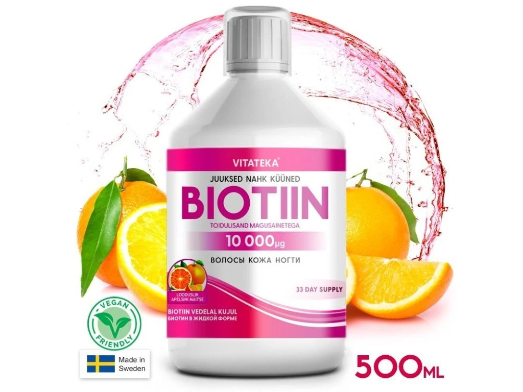 Biotín 10 000 mikrogramov od Vitateka je tekutý doplnok stravy s vysokým obsahom vitamínu B7 (biotín), ktorý je známy svojím priaznivým vplyvom na kvalitu vlasov, stav pokožky a pevnosť nechtov. Tekutá forma umožňuje rýchle vstrebávanie a pohodlné užívanie bez nutnosti prehĺtania tabliet.