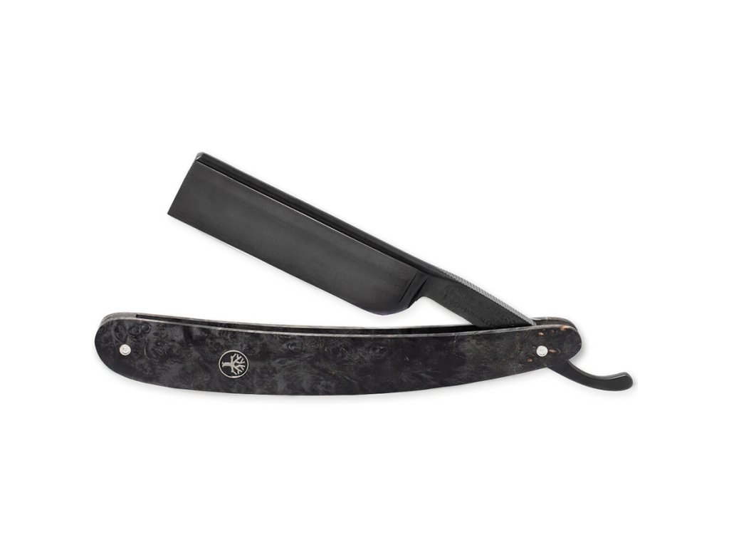 Luxusná britva od svetoznámej nemeckej spoločnosti BÖKER Black amboina s 6/8-palcovou prémiovou čepeľou z vysokokvalitnej uhlíkovej ocele, ktorá je zasadená do rukoväte z prémiového exotického dreva Amboina zaujme nápadne farebným vzorom.