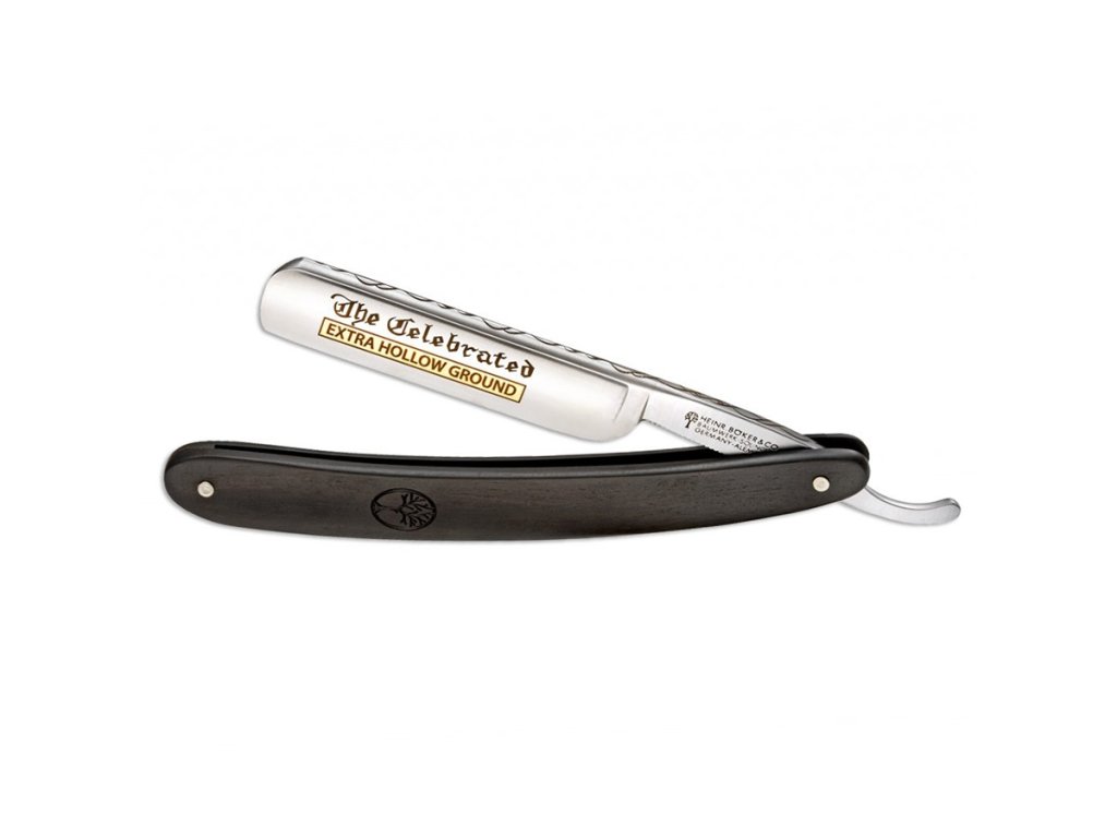 Britva od svetoznámej nemeckej spoločnosti BÖKER The celebrated ebenholz s 5/8-palcovou pracne zdobenou uhlíkovou čepeľou a rukoväťou z ušľachtilého ebenového dreva. Majstrovské dielo hodné každého pravého džentlmena.