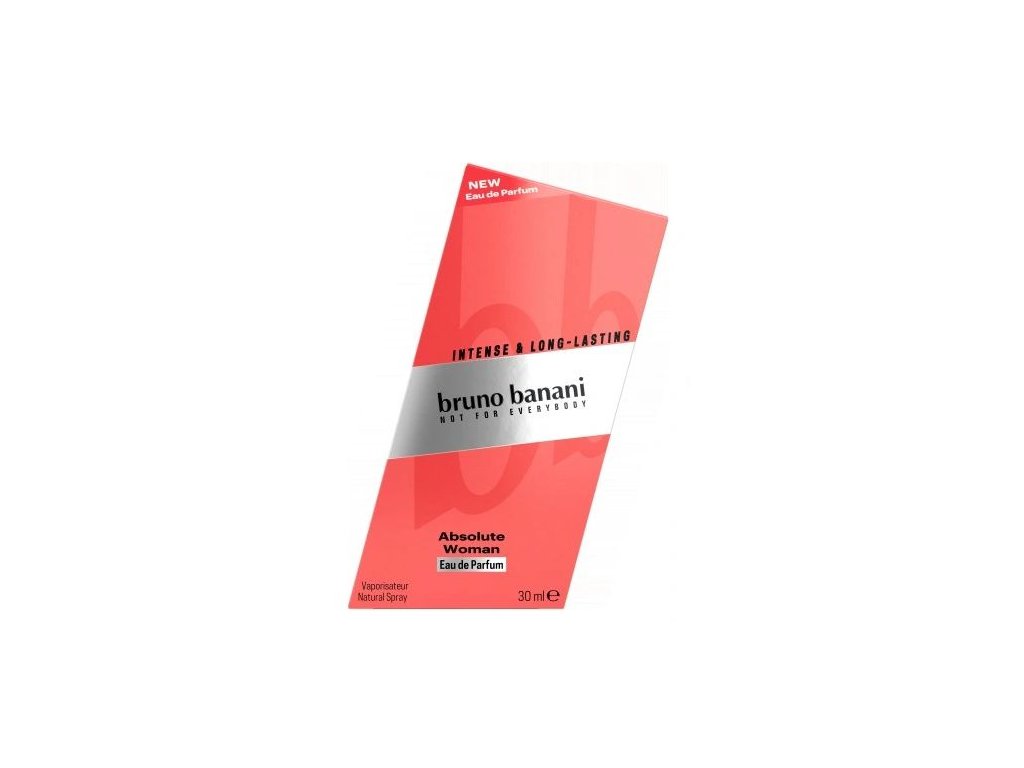 Parfumovaná voda bruno banani Absolute Woman je prekvapujúcou vôňou s hravým charakterom. Šťavnaté akordy ružového grapefruitu, ktoré žiaria v hlave, sú lahodnou ovocnou predohrou k tejto ovocno-kvetinovej kompozícii. Intenzívne akcenty ružového korenia vyjadrujú odvážny, trochu provokatívny aspekt vône a očarujúcu otrepanosť celku dokonale zdôrazňujú sladké akordy jantáru a vanilky.Objem balenia 30ml.Dodatočné parametre