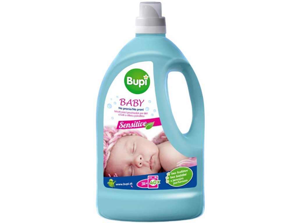 Jemné a šetrné pranie s pracím gélom Bupi BABY Sensitive! Bupi BABY Sensitive je špeciálny tekutý prací prostriedok s obsahom mydla vyvinutý pre jemnú detskú pokožku a ľudí s citlivou pokožkou. Svojím šetrným zložením bez fosfátov, bielidiel a s jemným parfumom je vhodný na pranie bielizne detí i dospelých s veľmi citlivou pokožkou. Univerzálny prací prostriedok Bupi BABY Sensitive pre dokonale čistú bielizeň.Objem balenia 3L.Dodatočné parametre