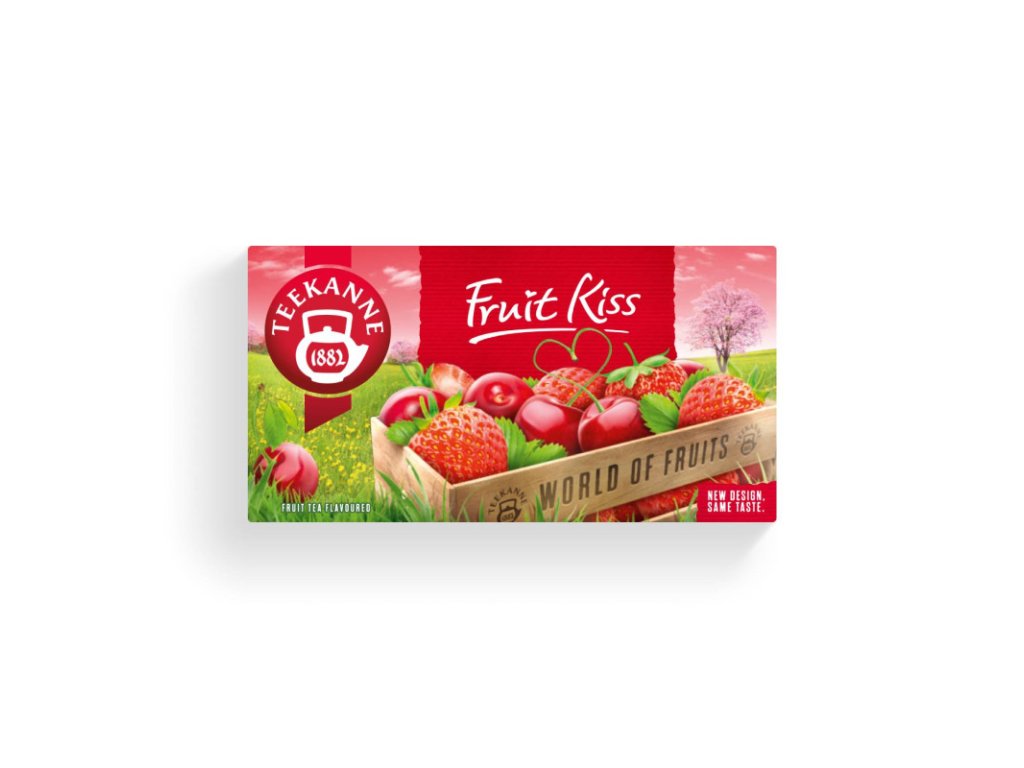 Čaj Teekanne Fruit Kiss 50g TEEKANNE World of Fruits je jedinečný výber najlepších ovocných čajov, s ktorým objavíte úplne nový svet. Plná chuť šťavnatých čerešní a zrelých jahôd robí z tejto špeciálnej ovocnej čajovej zmesi lahodný nápoj. TEEKANNE World of Fruits "Fruit Kiss" je sladkým zážitkom pre celú rodinu a môžete si ho vychutnať horúci i studený - nápoj sladký ako bozk! Balenie: 20 x 2,5 g Príprava: Čajové vrecúško zalejte čerstvou vriacou vodou a nechajte 8 minút lúhovať. Odporúčame použiť pre každú šálku nové vrecúško čaju. Oslaďte podľa Vašej chuti. Zloženie: Ibištek, Jablko, Šípky, Pomarančová kôra, Aróma čerešní, Jahodová aróma, Plod bazy čiernej, Jahody (1 %), Čerešne (1 %) Skladovanie: Skladujte v suchu Cena je za bal./50g