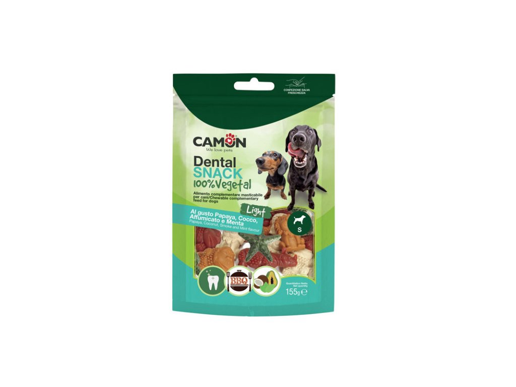 Camon SeaVeg Dental Snack Dog S hviezdica je dentálny bezobilninový pamlsok pre zabezpečenie ústnej hygieny Vášho psa. Vhodné pre šteňatá a psov všetkych vekov. Veľkosť S je vhodná pre malé a stredné plemená psov.Dodatočné parametre
