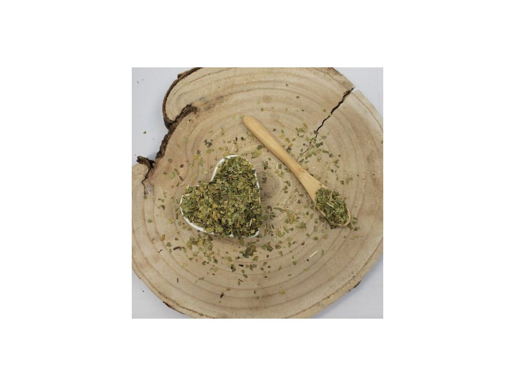 Cezmína paraguajská, Yerba maté - list narezaný - Ilex paraguariensis Maté (yerba maté) je pravdepodobne najobľúbenejší juhoamerický nápoj pripravovaný z lístkov cezmíny paraguajskej.  Cezmína paraguajská je vždyzelený strom vysoký asi 15 m, ktorý sa pestuje hlavne na území Argentíny, Brazílie, Čile, Uruguaja a Paraguaja. "Čaj" pripravovaný z lístkov cezmíny, je známy predovšetkým svojimi výraznými povzbudzujúcimi účinkami. Obsahuje kofeín, vďaka ktorému prispieva k potlačeniu duševnej a telesnej únavy.  Maté sa pije z nádoby zvanej kalabasa. Nálev je svetlo žltý, má delikátnu, reznú a ľahko natrpknutú chuť. Priaznivé účinky maté: podporuje vylučovanie vody z tela, podporuje metabolizmus lipidov, kontrola telesnej hmostnosti, osvieženie tela. Maté sa pije z nádoby zvanej kalabasa. Nálev je svetlo žltý, má delikátnu, reznú a ľahko natrpknutú chuť. Použitie Lístky zalejte horúcou vodou (teplota 80-90°C) a nechajte 3-5 minút lúhovať. Potom sceďte. Čím dlhšie necháte nálev lúhovať, tým je povzbudivejší, ale pozor, po asi 5 minútach začína horknúť. Z jednej dávky je možné pripraviť ďalšie nálevy. Maté môžete piť v ktorúkoľvek dennú dobu. Možno podávať s limonádou, džúsom, prípadne ochutiť javorovým sirupom alebo medom. Upozornenie Obsahuje kofeín, nie je vhodný pre deti do 15 rokov, tehotné a dojčiace ženy. V prípade záujmu o väčšie množstvo alebo o veľkoobchodnú spoluprácu, nás neváhajte kontaktovať. Kontakty na našich obchodných zástupcov a viac informácií nájdete tu: https://www.bioruza.sk/velkoobchodny-predaj Pre recepty, ako bylinky používať, ako si urobiť bylinný čaj, tinktúru masť a ďalšie si prečítajte náš článok tu: https://www.bioruza.sk/a/bylinne-pripravky-alebo-ako-pouzivat-susene-byliny Krajina pôvodu: Brazília