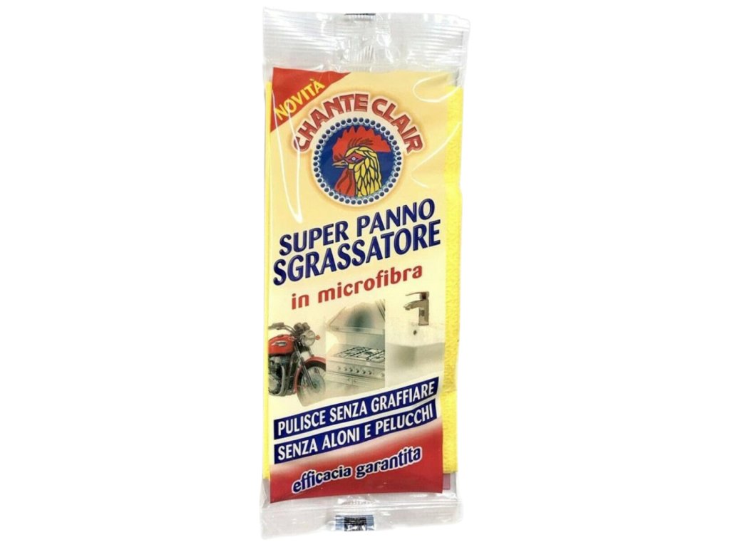 Univerzálna odmasťovacia utierka z mikrovlákna Chante Clair Super Panno Sgrassatore je ideálna na čistenie menších povrchov domácnosti ako sú sporáky, digestory, krájače, pracovné dosky, sanitárna keramika a drezy. Vďaka svojej špeciálnej štruktúre z mikrovlákien najvyššej kvality odstraňuje efektívne a ľahko aj tie najväčšie nečistoty a mastnotu bez toho, aby poškodila alebo poškriabala čistené povrchy. Nezanecháva šmuhy ani chĺpky, extra saciu schopnosť. Zostáva stále rovnaká a kvalitná aj po mnohých praniach. Pri použití s univerzálnym odmasťovačom Chante Clair sa zvyšuje jej účinnosť.