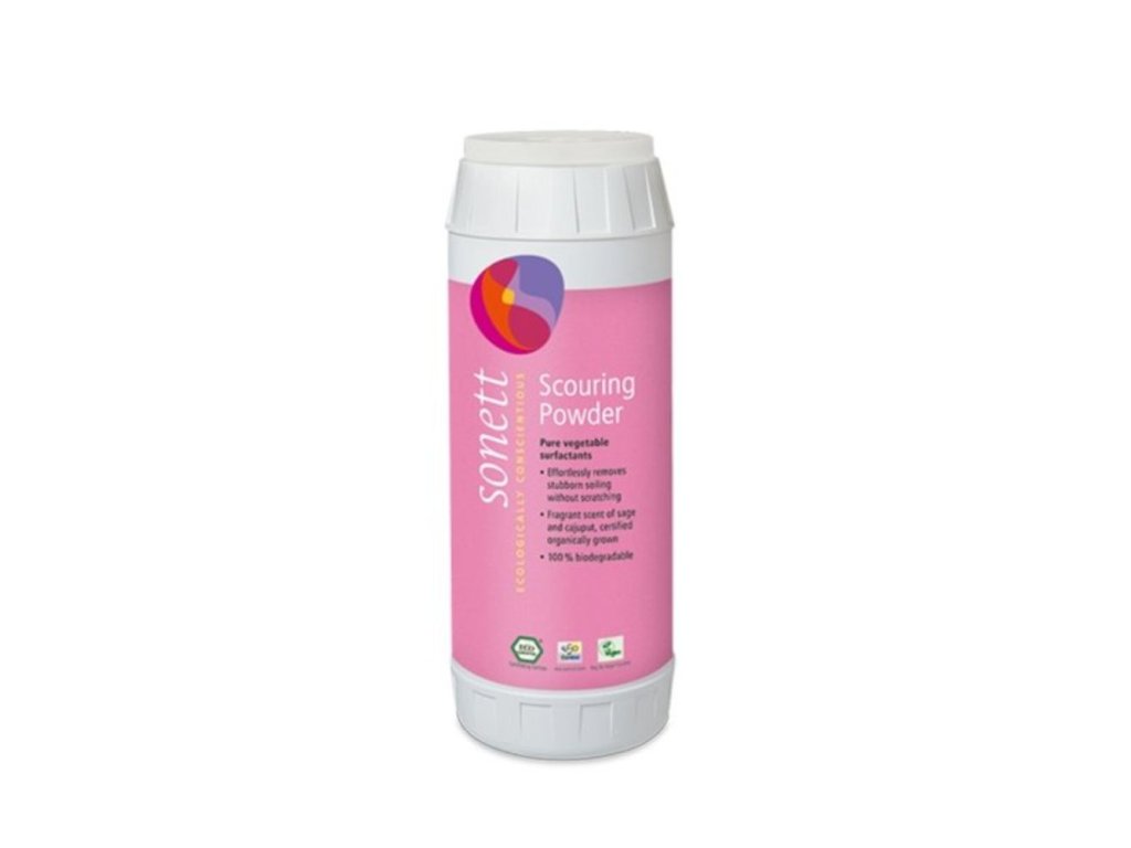 Čistiaci prášok Sonett 450g Univerzálny čistiaci prášok je využiteľný v kuchyni a aj na čistenie hygienický zariadení v kúpeľni a na toalete. Je vhodný na čistenie umývadiel, vaní, obkladu a aj WC. Čistí bez námahy a bez škrabancov. Dokáže odstrániť aj pripáleniny z nerezového a smaltovaného riadu a mastnotu zo sporákov. Vlastnosti čistiaceho prášku: efektívne odstraňuje zažratú špinu a nepoškriabe, čiste rastlinné zložky, vôňa šalvie a kajeputu z ekologického pestovania, 100% biologicky odbúrateľný, vhodné pre všetky ekologické čističky vôd. Celý obal je recyklovateľný. Použitie Aplikujte malé množstvo pomocou špongie a jemne vyčistite. Upozornenie! Držte mimo dosahu detí.Dodatočné parametre