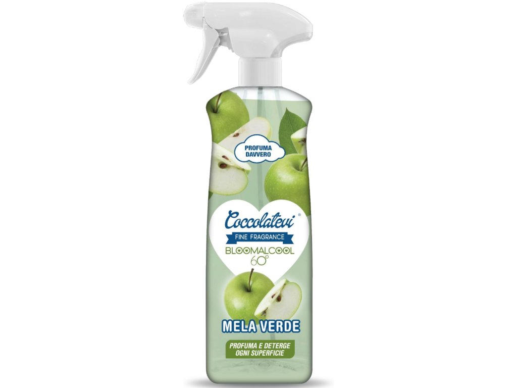 Bloomalcool Coccolatevi je supervoňavý 60° alkohol používaný v parfumérii a kozmetike, ktorý sa vyznačuje príjemnými tónmi zeleného jabĺčka. Vhodný na všetky druhy nečistôt, pomáha odstraňovať šmuhy, odtlačky prstov, choroboplodné zárodky a baktérie, je vhodný na akýkoľvek typ povrchu a rýchlo sa odparuje.