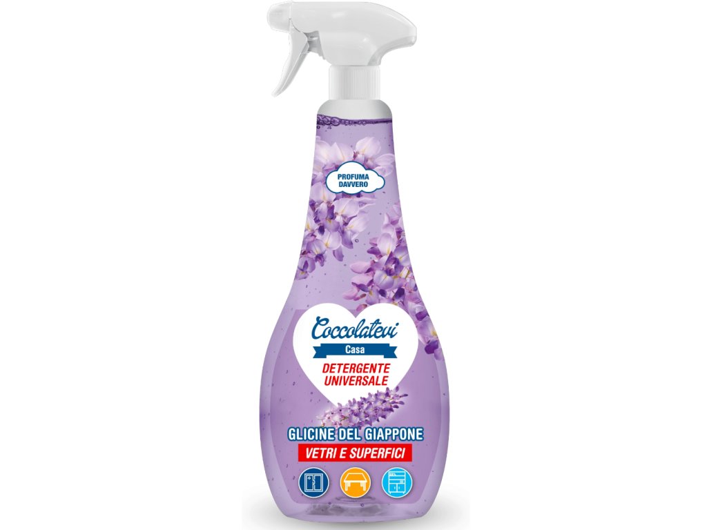 Prostriedok na okná Coccolatevi japonská vistéria je ideálny na okná a sklenené povrchy a všetky tvrdé povrchy, rýchlo schne a nezanecháva šmuhy. Je to prostriedok s inovatívnym zložením s veľmi nízkym dopadom na životné prostredie a navyše s krásnou vôňou.