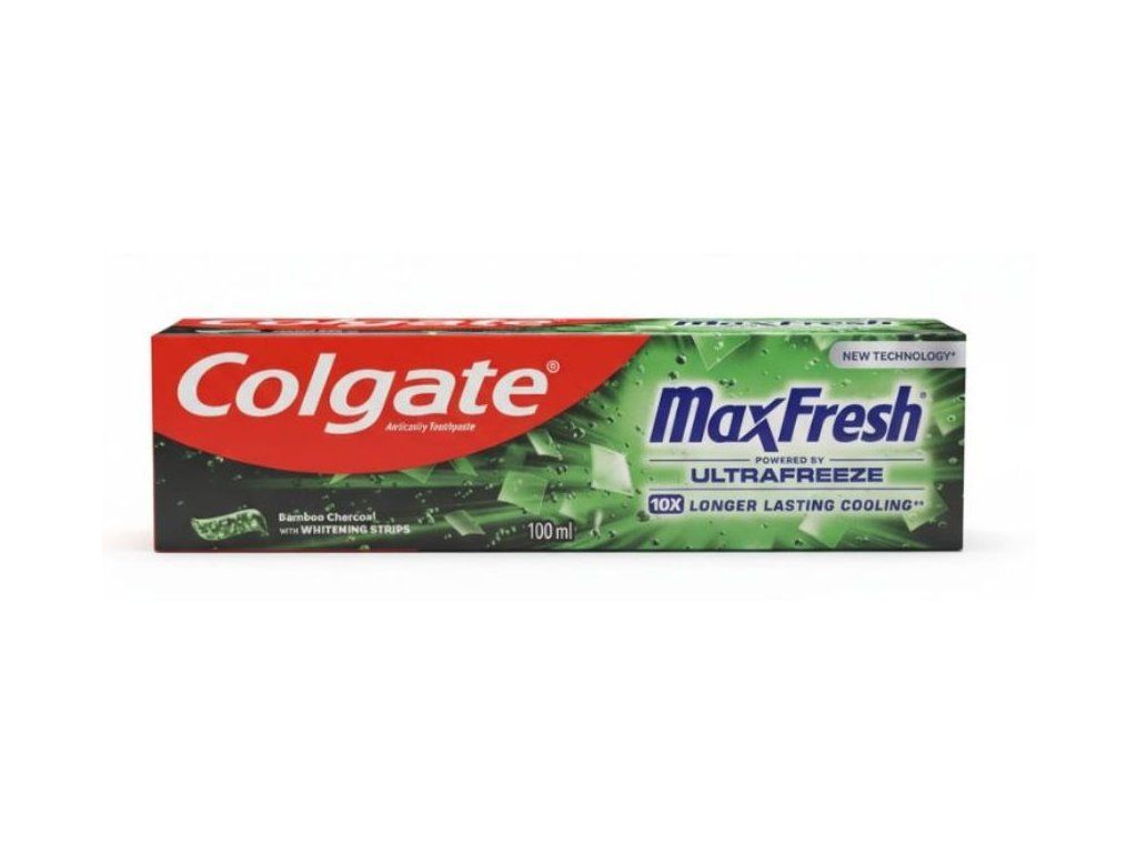 Colgate Max Fresh Bamboo Charcoal je inovatívna zubná pasta, ktorá kombinuje aktívne bambusové uhlie s účinnou ochranou zubov. Bamboo Charcoal účinne absorbuje nečistoty a povrchové škvrny, čím zanecháva zuby čistejšie, belšie a sviežejšie. Pasta zároveň obsahuje fluorid pre posilnenie skloviny a prevenciu zubného kazu. S Max Fresh technológiou poskytuje dlhotrvajúcu sviežosť dychu, zatiaľ čo jemné perličky uhlia pôsobia na bielenie zubov bez poškodenia skloviny. Praktické balenie 100?ml – ideálne do domácnosti aj na cestovanie.Dodatočné parametre