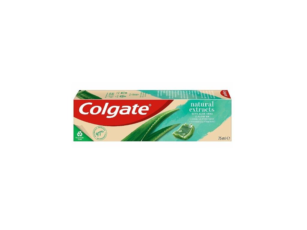 Colgate Natural Extracts Aloe Vera je osviežujúca zubná pasta s 97 % zložiek prírodného pôvodu. Je to zubná pasta so starostlivo vybranými minerálmi a prírodnými výťažkami, ktorá poskytuje ochranu ústnej dutiny.